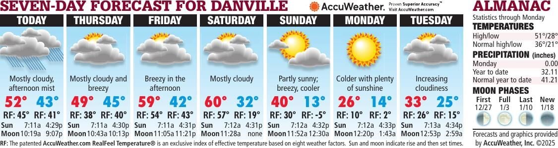 ![]() DANVILLE — Local shelters are giving back to the community they serve in a variety of ways this holiday season. And, they are always in need o… DANVILLE — It wasn’t a big jackpot, but one man got very lucky recently at the Golden Nugget Casino. DANVILLE — Danville Area Community College Foundation will open its scholarship application for the 2026-2027 academic year on Tuesday, Jan. 6… URBANA — It’s a cold and overcast day in November, but Sola Gratia farm in Urbana is teeming with life. The last leafy greens of the season ar… DANVILLE — The City of Danville Public Works Department announces the closure of the 200 block of West Williams, between Oak and Franklin. DANVILLE — To keep the Fischer Theatre alive and thriving in Danville, it takes thousands of volunteers and donations. BROADVIEW — Four Illinois Democrats toured a federal immigration center outside Chicago on Monday, the latest members of Congress allowed insi… More NewsDANVILLE — The City of Danville Public Works Department announces the closure of the 200 blo… DANVILLE — To keep the Fischer Theatre alive and thriving in Danville, it takes thousands of… BROADVIEW — Four Illinois Democrats toured a federal immigration center outside Chicago on M… DANVILLE — A woman driving near Kickapoo State Park recently found what she initially though… Incoming officers were installed at the December meeting for Vermilion County Retired Teache… With the Indiana General Assembly expected to conclude its short, non-budget session by Feb.… Via their $100,000 mission to fight multiple sclerosis, Heisman Trophy winner Fernando Mendo… Winter in the Midwest can be a curse — frosty sub-zero nights, snapped power lines blinking … Most Popular |
