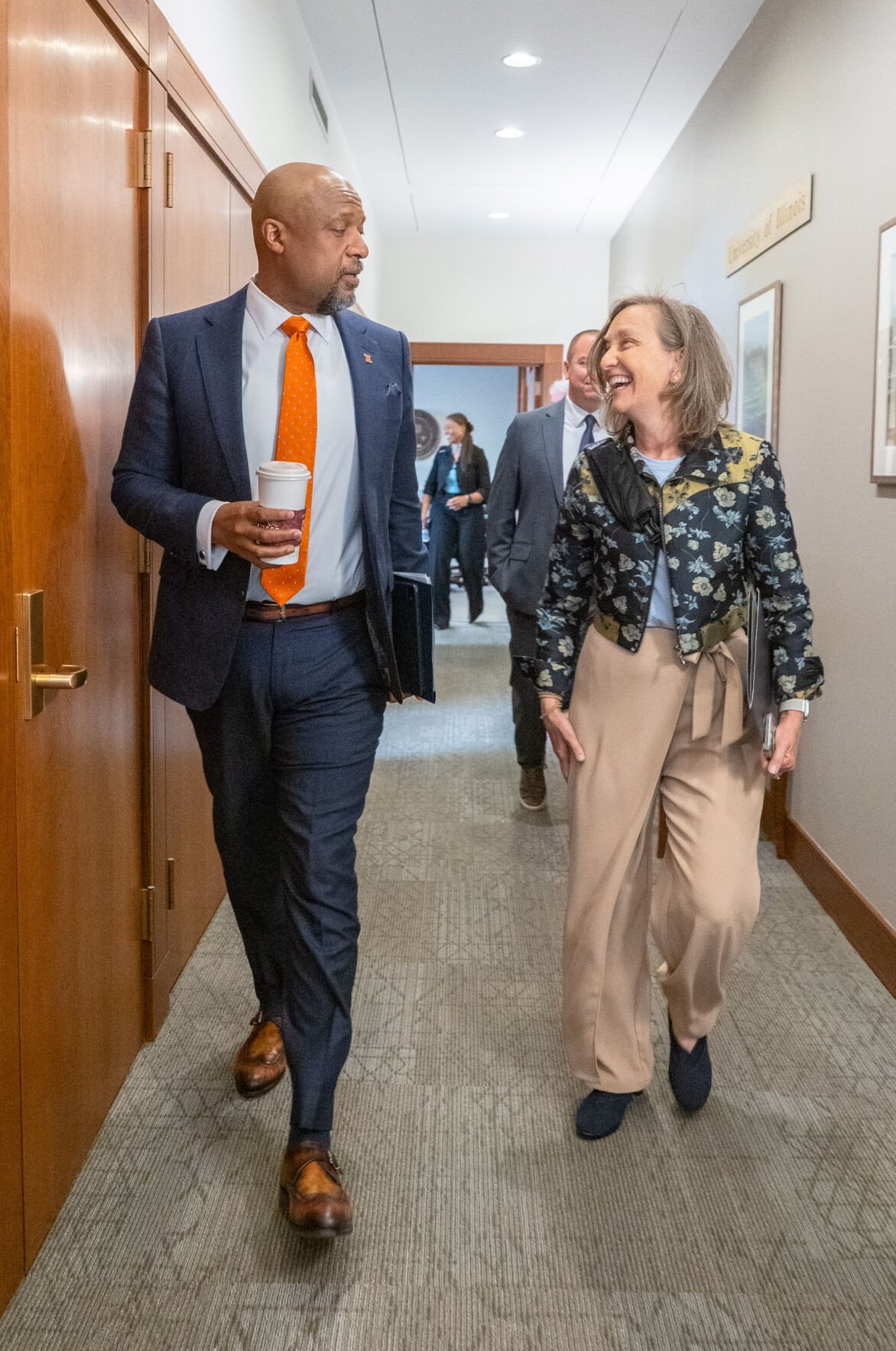 THE FOLLOWING IS A NEWS-GAZETTE STORY BY JEFF D'ALESSIO ABOVE: Ashton Greer's favorite moment on the job so far? "Turning the Fischer Theatre around in 2025 to lead us into a bright future." (p...