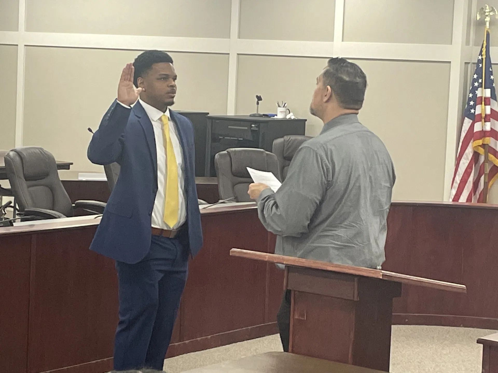 ABOVE: Danville's Mayor Rickey Williams, Jr swears in new Danville Probationary Officer DiAjae Williams. On Tuesday morning, December 23rd, a ceremony was held in the Danville City Council Cham...