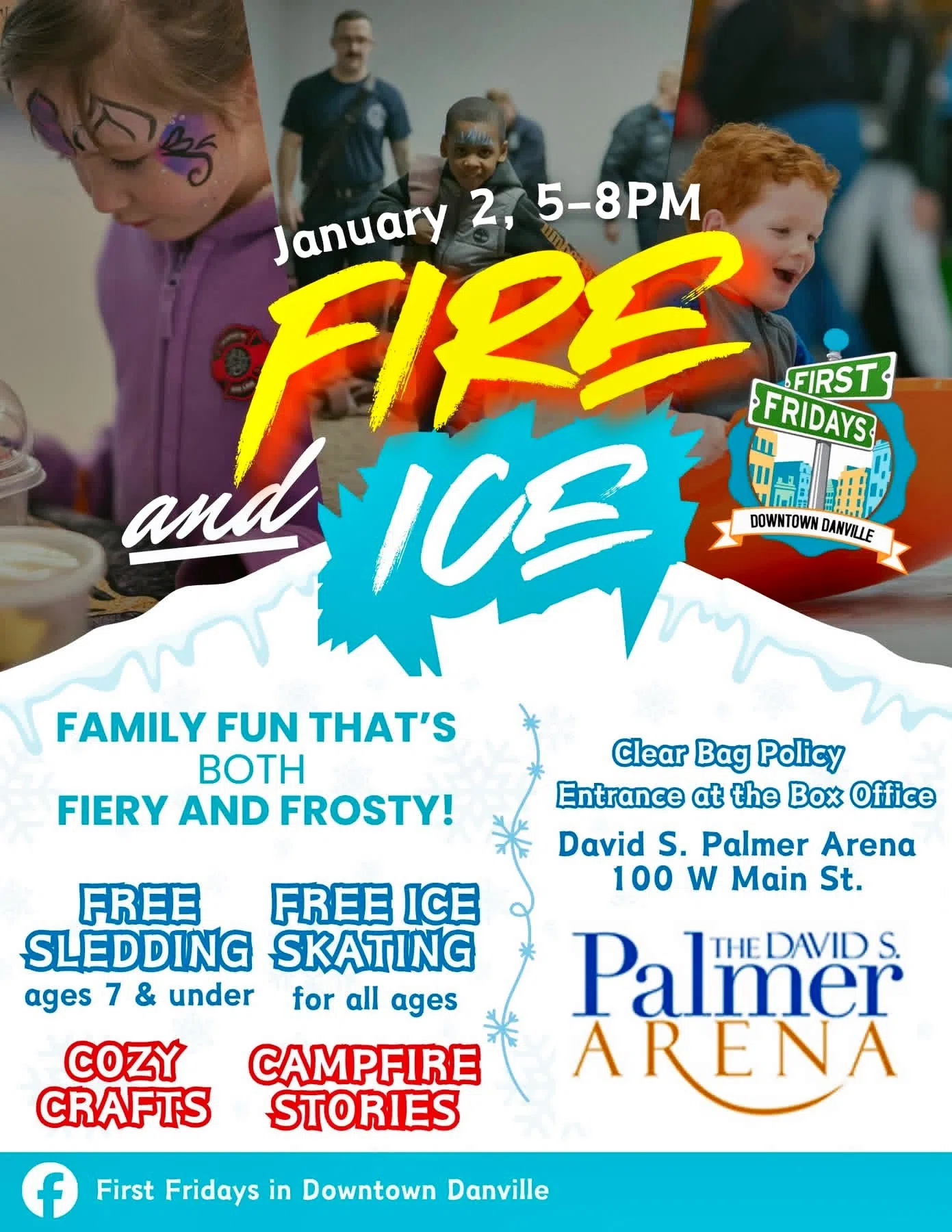 THE FOLLOWING IS A CITY OF DANVILLE RELEASE Kick off the New Year with fiery and frosty fun at First Fridays: Fire & Ice on January 2nd from 5-8 PM at the David S. Palmer Arena! Enter throu...