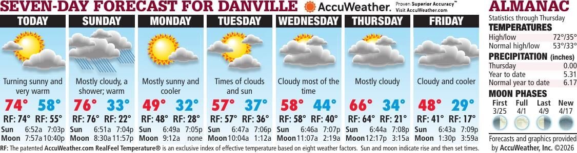 ![]() Every year on March 23, National Puppy Day reminds us why we love dogs in the first place — the joy, companionship, and energy they bring into… In this article, three questions about clinical depression (CD) will be answered: It was a barren place with a tangle of forest trees, hazel brush, wild vines, and three cabins. That is how Francis Ann Martin remembered the … DANVILLE — More than a century ago, Danville Firefighters Albert H. Holmes and Albert F. Shanks died in the line of duty while fighting a fire… School administrators are witnessing a surge in students using AI platforms to remove clothing from classmates’ social media photos to create … Law enforcement agencies around the state are struggling to crack down on the rapidly growing spread of child sexual abuse material generated … Sweet spring is here ... buttery daffodils smiling at the sun ... purple crocuses shooting from the earth ... robins gayly singing ... grass g… DANVILLE — Tonight at the Mary Miller Center, two teams will be playing for the ultimate goal — an NJCAA Division National Title. DANVILLE — The Danville City Council approved special use petitions for a pair of Soltage co-located fire mega-watt solar energy facilities al… DANVILLE — People will not only being looking to the skies this June for the 10th Balloons over Vermilion at Kennekuk County Park, but they wi… DANVILLE — The City of Danville announced the closure of the intersection of Harmon and Roselawn Streets for stormwater improvements. More NewsDANVILLE — The Danville City Council approved special use petitions for a pair of Soltage co… DANVILLE — People will not only being looking to the skies this June for the 10th Balloons o… DANVILLE — The City of Danville announced the closure of the intersection of Harmon and Rose… CHICAGO — A proposed bill bearing the name of the late Rev. Jesse Jackson would require high… DANVILLE — Downtown Danville Inc. (DDI) announced the opening of Bresee Bar and Grill, a new… DANVILLE — Vermilion County has known for a while it would be getting a new sheriff. DANVILLE — Chuck Jones has one of the best views of the Dick Shockey Court during the NJCAA … Photo Galleries |