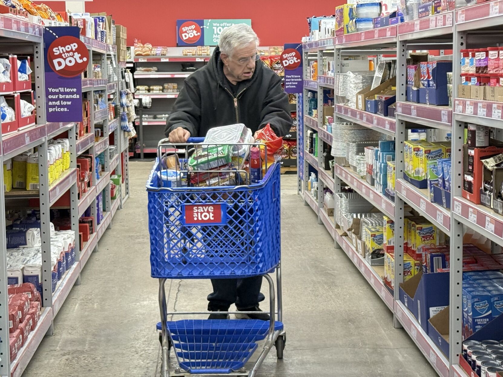 THE FOLLOWING IS A NEWS-GAZETTE STORY BY JENNIFER BAILEY ABOVE: Ridge Farm resident Alan Johnson stops recently at Save-A-Lot in Georgetown. He shops at the grocery store about once a week. He ...